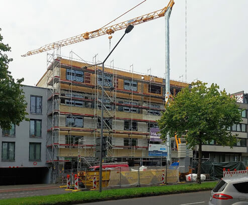 Rechtzeitig vor dem Neusser Bürger-Schützenfest wird die Fassadensanierung an der Oberstrasse abgeschlossen.